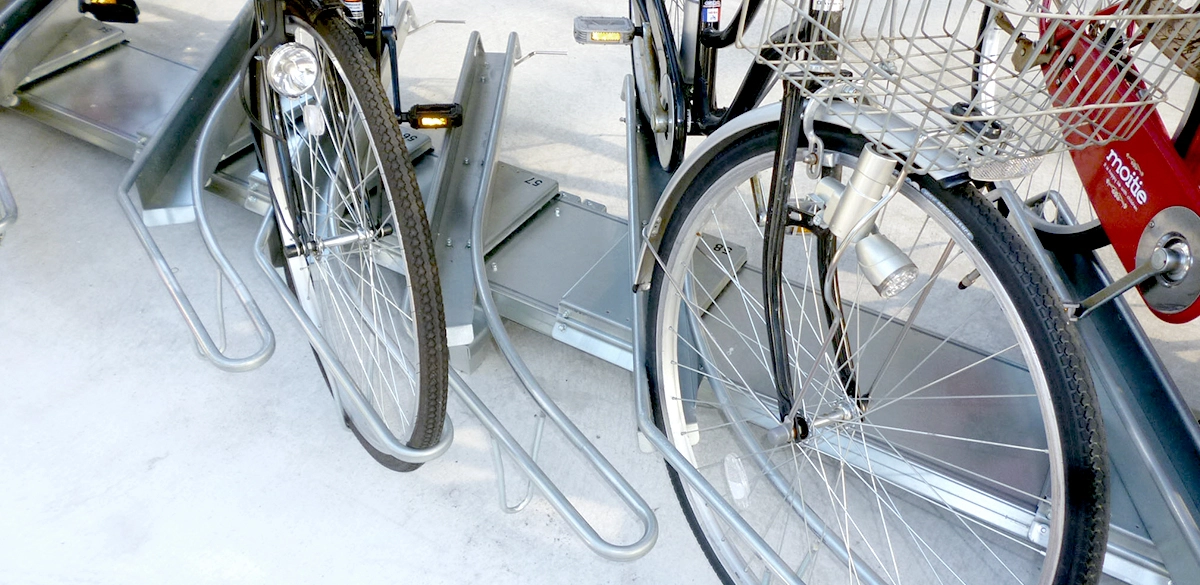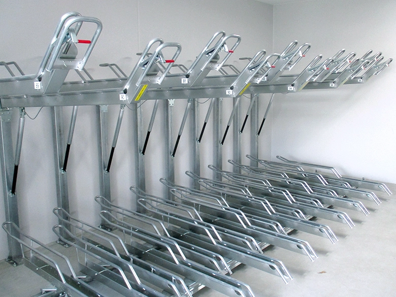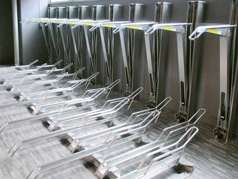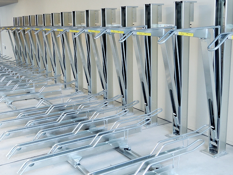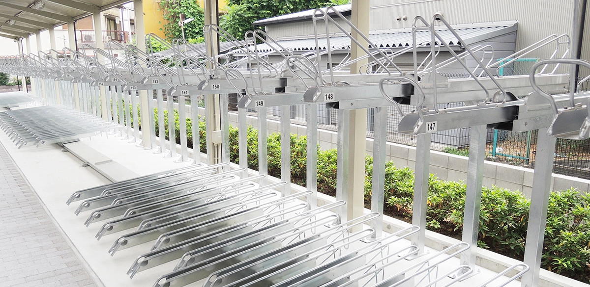 電動アシスト自転車(35kgまで)を収容可能な効率収容スライドラック