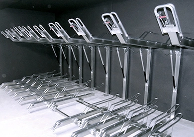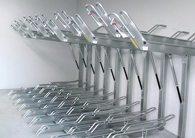 ガスシリンダーで収容をアシストします。音のしない静音タイプ(屋内駐輪場に最適)